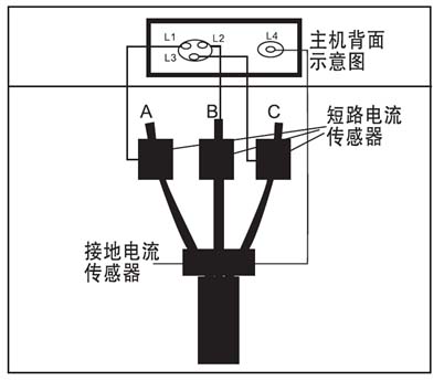 在主機(jī)背面可見一圓形三孔栓(L1.L2.L3)與一個單孔栓及用以檢測故障電流傳感器數(shù)據(jù)輸出信號與主機(jī)鏈接的接口。具體安裝方法如下: